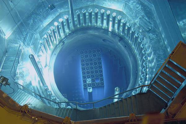 In this post, we discuss accidental loss of coolant. The image opposite is the reactor core from the Swiss KKG plant, shown in Decisions-1. We are looking down, into the top of the pressure containment vessel to the top of the core, the grid-like structure in the center of the “bulls-eye.” The reactor core is seen deeply below the surface of the water used as coolant for the very hot uranium fuel. At least part of the visible blue illumination is generated by radiation resulting from the fissioning of the fuel. The discussion of coolant requires a bit of understanding of how reactors work.