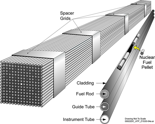 Fuel Rods are hollow tubes filled with fuel pellets. The rods have zirconium alloy walls which resists oxidation as well as stainless steel but is resistant to swelling in the reactor neutron flow, this swelling was discoverd during early reactor operations, led to early incidents and were a really big “oops” for the industry.