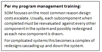 The Wikipedia reference is not good; I have had little luck with finding a widely accepted definition for SOM. Applied to the shuttle, SOM meant starting design at the nose of the craft and designing inch-by-inch to the tail, never looking back at previous design assumptions.