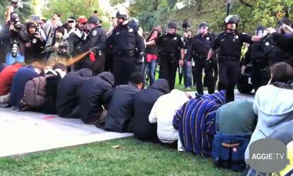 On Friday, November 11, Police in Davis California used pepper spray to quell a quiet group of students participating in the current nation-wide protests.