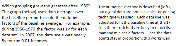 From this graph, the best upward sloping trendline might start at 1980, maybe later. Surprise: The Top 10% displayed the clearest effect in the original set, but shows the smallest actual expansion in the post-Carter years.