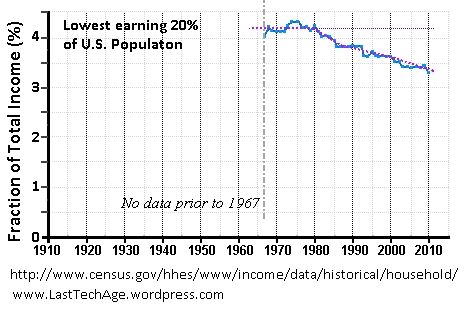 Starting about 1980, our society gradually lost many of its capabilities. At the same time the various income classes lost or gained from their original fraction of the total income, we exported our industrial might across the world and shut down our factories. I am not sure we could now manufacture a fluorescent light if we had to.