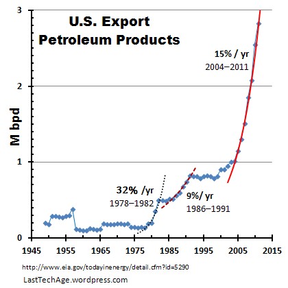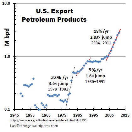 This post is an update to US Petroleum Exports are Huge. LastTechAge is presenting it because this startling chart has been taken off-line at least once in the past week, and because internet data is politically fragile. Here is the original EIA link, also shown in Huge. Here is the PDF of the originalEIA report.