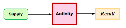 Everything in a process starts with things used (Supplies) that lead into work (Activity) that combines the supplies in a way to produce the product (Result).
