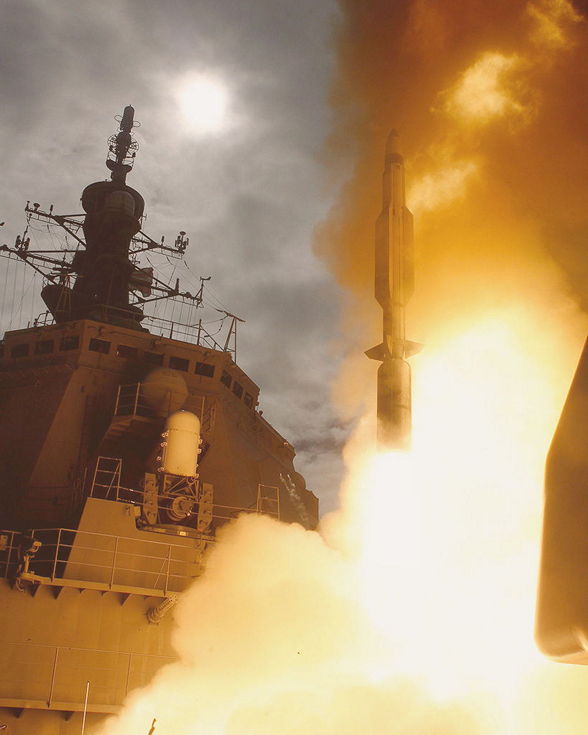 The SM-3, on display in Fig 8, is a 3 stage vertically fired missile that was developed from the Evolved Sparrow Standard missile.