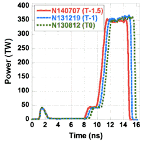Fig 4 shows the NIF laser pulse shape for the test shots. (For reference, 1 ns means 1 billionth of a second.)