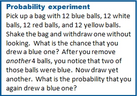Consider the situation in our side box. The first question is straightforward simple probability.